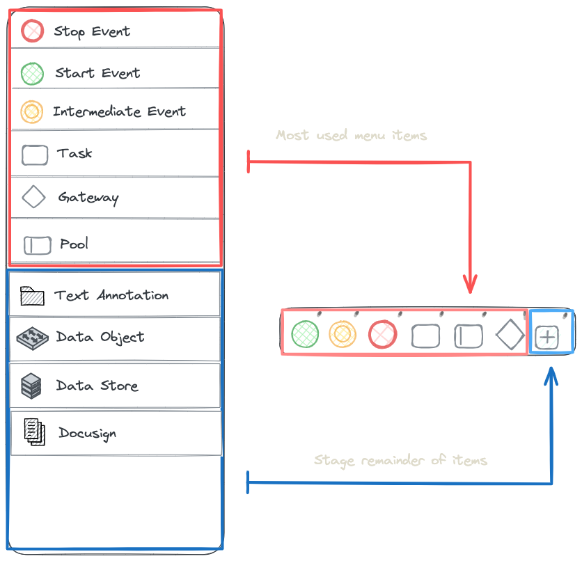 At the time of the redesign, major players in the BPMN modeling space were relying on older UI and UX patterns, which had become noticeably dated. This scenario presented an opportunity to set our canvas modeling tool apart by implementing contemporary, modern UI patterns, enhancing operation efficiency and user engagement.